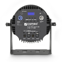 Der Cameo Flat Pro Spotix 4 arbeitet durch hocheffiziente Konvektionskühlung absolut geräuschlos und kann mit Netzspannungen von 110 bis 240 Volt universell versorgt werden. Das robuste, schwarze Metallgehäuse ist mit 3- und 5-poligen XLR-Buchsen zum Ein- und Ausgang des DMX-Signals ausgestattet, powerCON-Verbinder des führenden Herstellers Neutrik dienen zum Netzanschluss und -ausgang. Ein verstellbarer Mehrzweck-Montagebügel bietet vielfältige Möglichkeiten zur Ausrichtung und Befestigung.