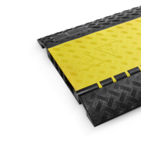 - Hochbelastbare rutschfeste Allround-Kabelbrücke aus schwarzem, recyclebarem Polyurethan mit integrierten Tragegriffen