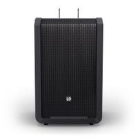 Durch die integrierten Rollen und dem ausziehbaren Teleskopgriff lässt sich der Lautsprecher ganz bequem wie ein Trolley ziehen.