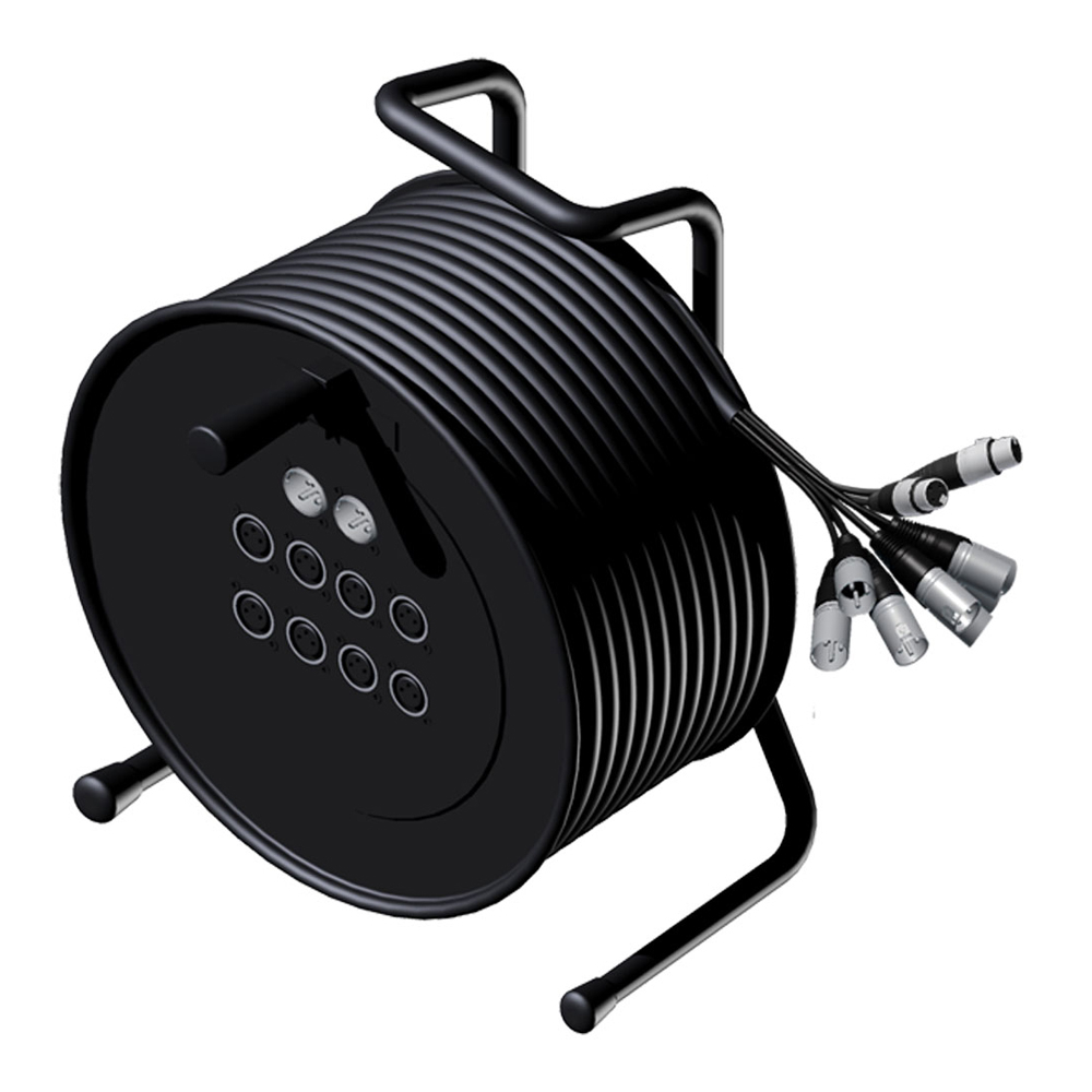 Multicore auf Trommel mit Stagebox 2 x XLR female & 8 x XLR male auf 8 x XLR female & 2 x XLR male 10 m