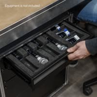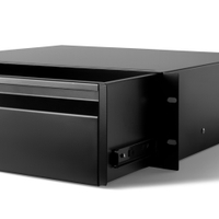 If you want to keep your rack tidy by storing accessories and cables conveniently and safely, ERGO has a sturdy rack drawer for tough everyday travel. The 1.5 mm aluminium rack drawer runs smoothly on ball bearing mounted telescopic rails and can be fully pulled out or completely removed.
