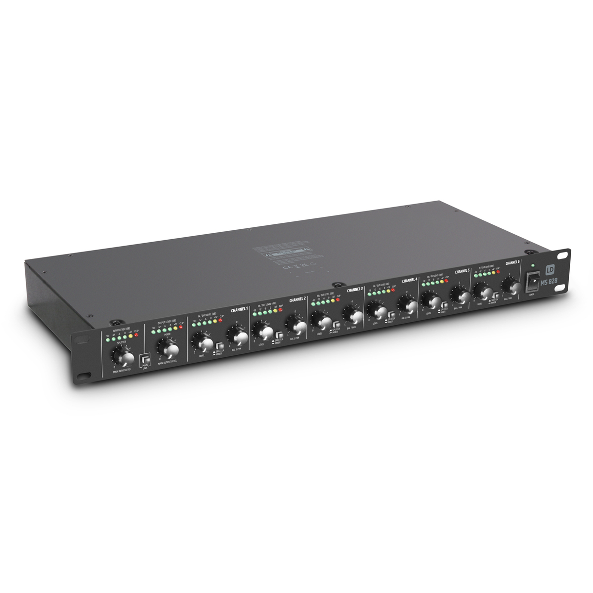 The LD Systems LDMS828 is a mixer, splitter, and booster amplifier in 19” rack format for flexible live and studio applications.