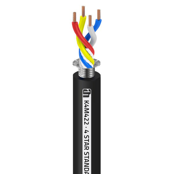 The K4M422 from our standard series is a high-quality microphone cable for balanced transmissions of low-impedance signals. The cable consists of four twisted, fine-stranded OFC copper conductors that ensure efficient unbalance attenuation. Thanks to the thick, robust PVC jacket with high strength, flexibility and abrasion resistance, the K4M422 is suitable for live applications, studio and home recording and is perfect for connecting effect or control signals that require a return signal.