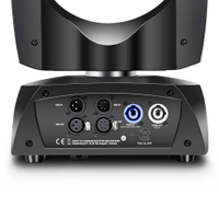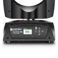 The rugged black metal and ABS housing of the Cameo AURO® BEAM 150 has 6 buttons and a backlit display for easy operation. The moving head can be used with all mains voltages from 100 to 240 volts and comes with a power cable and an Omega mounting bracket.
