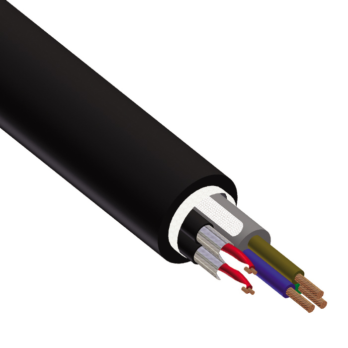 The PAC55 is a high quality stereo balanced signal and power cable in one jacket. This kind of cable is designed to fulfill all demands when using active loudspeakers. The cable consists of a power cable and a stereo balanced signal cable. A general outer jacket with an O.D. of 15 mm made of flexible PVC protects each inner cable against abrasion. The inner power cable contains 3 conductors with a section of 1.5 mm², protected by a PVC jacket with an O.D of 8 mm.