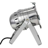 The Cameo CLP64RGBA10PS is a professional PAR 64 spotlight in a traditional aluminium housing with 177 bright, long-lasting 10mm LEDs in the colours red, green, blue, and amber (RGBA system). Two adjustable brackets with knurled locking screws permit use as a floor spot and mounting on traverses, walls, and ceilings. The beam angle is 25°.