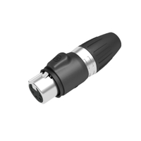 The 7890 is a high-end 5-pole female XLR cable connector with IP65 rating for outdoor use. It is protected against water and dust ingress when mated with appropriate chassis and cable connectors and accepts cables up to 8 mm diameter. This XLR connector features a heavy-duty diecast zinc shell and gold-plated solder contacts.