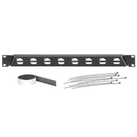 Panel de rack inclinado de 19" con 8 huecos para conectores de superficie de tipo D, con sistema antitirones en la parte de atrás.