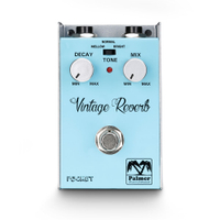 El Vintage Reverb de Palmer reproduce el clásico sonido del reverb de muelles, con un carácter auténtico y completas opciones de control. El control Decay ofrece desde un tiempo de reverberación corto y sutil, hasta un Hall largo y profundo, mientras que el conmutador Ton le da al efecto un color oscuro y cálido o con brillo. El control Mix ajusta la proporción de reverb a la señal original. Este pedal compacto cuenta con un robusto pulsador y funciona con batería de 9 V o un adaptador de corriente de 9 voltios, como el Palmer PW9V.