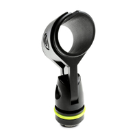 La pinza GMSCLMP 25 está diseñada para micrófonos de mano con un diámetro de 24 a 35 mm. La irrompible pinza sostiene el micrófono de forma segura y se puede inclinar para orientar el micrófono en la posición deseada. Se suministra con un adaptador de 3/8".