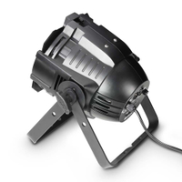 El CLPST64RGBAQ8W de Cameo es un foco PAR 64 profesional para estudio con un ángulo de dispersión de 25°, en una clásica carcasa metálica de color negro. Está provisto de 18 LEDs ultrabrillantes de cuatro colores RGBA (RGB más ámbar) de gran eficiencia de 8 W, que ofrecen una perfecta mezcla de colores naturales de gran intensidad, y una alta frecuencia de refresco de 5.000 Hz para un funcionamiento sin parpadeo, por lo que también es ideal para platós de TV.
