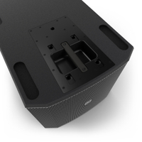 SUB 15 supports ground stacks of up to three units. The docking plate on the top side allows a M20 speaker pole or a MAILA COL to be mounted directly onto the subwoofer.