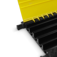 Pasacables de 5 canalesDesarrollado para entornos extremos, el pasacables Defender® XXL dispone de 5 canales para cables y mangueras de gran tamaño, 3 de los cuales permiten alojar mangueras de tipo C empleadas por los bomberos (con un diámetro de hasta 62 mm, sin el acoplamiento) y también cables de alta tensión. Integra piezas de unión para un fácil acoplamiento, lo que permite formar un rígido pasacables continuo. Como accesorios dispone de finales de rampa para proteger las entradas y salidas de cables. Con una capacidad de carga de 5 toneladas para una superficie de 25×30 cm, los protectores de cable Defender XXL son ideales para tráfico rodado de vehículos pesados, obras de construcción, almacenes, ferias, carnavales y eventos musicales. Está provisto de asas para un fácil transporte. Está provisto de asas para un fácil transporte.