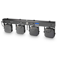 Cuatro proyectores planos compactos, montados en un barra con controles integrados, hacen del CLMPAR 1 el equipo imprescindible para la iluminación de escenarios. Cada proyector plano está equipado con 108 LEDs ultrabrillantes de 10 mm, que ofrecen una intensidad impresionante y una perfecta mezcla de colores.