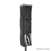 La housse MAILA ARRAY RC S protège un module MAILA SAT et un module MAILA SPA (ou deux modules SAT), aussi bien posés au sol que suspendus. Une fenêtre transparente détachable garantit un accès facile au panneau de commande et de connexion, ainsi qu'une ventilation suffisante de l'amplificateur afin d'éviter toute surchauffe. Pour une utilisation avec deux modules SAT, la face arrière transparente peut être remplacée par un élément fermé. La housse peut aussi rester ouverte à l'arrière, afin de permettre le montage des modules et le réglage de leur angle d'inclinaison.