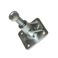 Ce connecteur se monte sur la partie frontale d'un couvercle. Le goujon à ressort s'enfonce et est maintenu enfoncé par un étrier. Le couvercle peut maintenant être facilement accroché à la paroi latérale du Flightcase. Le goujon qui est bloqué en position sortie est introduit dans l'embase du système de connexion table de rack (87987). Relâchez ensuite l'étrier du goujon-connecteur: le couvercle est maintenu fermement contre la paroi du Flightcase. Combinez ceci avec un set de pieds pour tables de rack et vous pourrez transformer un couvercle de Flight en table-surface de travail.