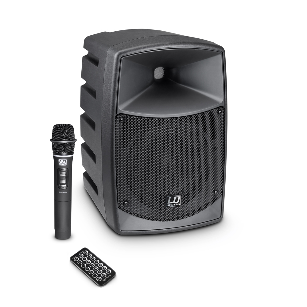 Facile à transporter, le Roadbuddy 6 peut, grâce à son module de réception Bluetooth et son récepteur pour micro HF, s'utiliser intégralement sans fil. Le récepteur FM intégré opère sur une bande libre de 863 à 865 MHz (864 900 Hz), le lecteur Bluetooth lit les formats MP3, WAV et WMA, et est équipé par ailleurs d’un port USB et d’une fente pour carte SD. Le Roadbuddy 6 est livré avec un micro/émetteur à main (réf. LDRBUD6) ou un micro sur serre-tête avec émetteur de poche (réf. LDRBUD6HS), ainsi qu'une télécommande infrarouge pour le lecteur MP3.