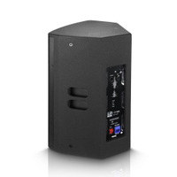Le robuste coffret en multiplis de bouleau bénéficie d'une finition laquée Dura-Coat LX, résistant à l'humidité, et possède un pan incliné à 50°, ce qui permet d'utiliser la LDV15A en tant que retour de scène. L'entrée et le renvoi du signal audio, de niveau ligne, s'effectuent respectivement sur connecteurs Combo (mixte XLR/jack) et XLR. Des LED situées au-dessus du potentiomètre de réglage de volume indiquent le statut des différentes fonctions, notamment la mise en action du limiteur et du circuit de protection. L'embase pour trépied permet une orientation verticale optimale. Des inserts filetés M8 sont prévus, pour accroche ou montage sur support en U, sans oublier des pieds en caoutchouc et une solide grille de protection à l'avant ; des poignées de transport encastrées de forme ergonomique facilitent le transport. De nombreux accessoires sont disponibles pour la LDV15A.