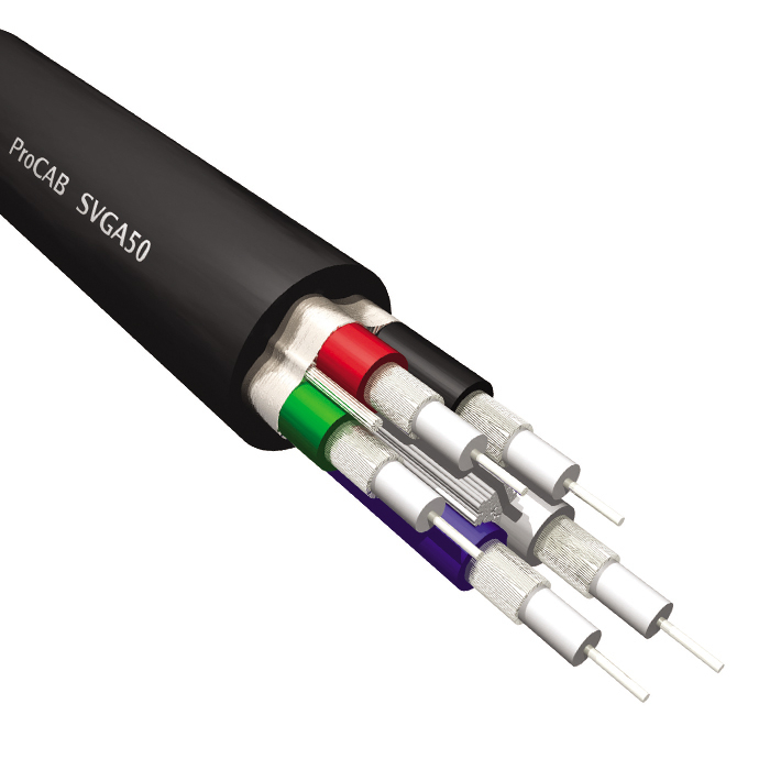 Le SVGA 50 est un câble vidéo haut de gamme, adapté à toutes les applications de liaison vidéo à haute résolution. Il comprend 5 câbles coaxiaux blindés, possédant tous une âme rigide en cuivre étamé, un diélectrique en mousse de polyéthylène, un