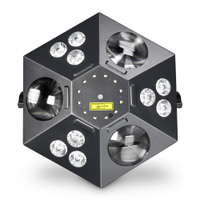 - Projecteur Wash et lumière noire grâce à 9 LED RGB + UV, d’une puissance de 4 W chacune