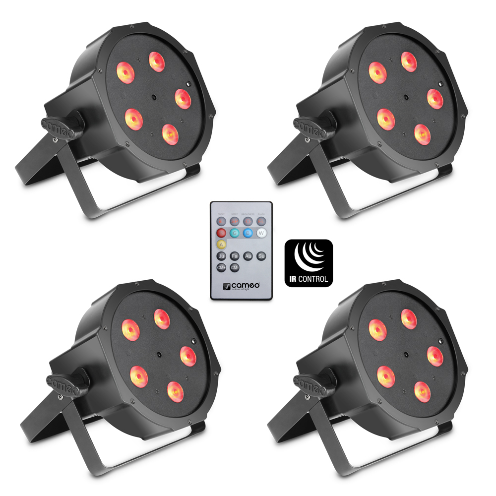 Set de 4 Projecteurs PAR plats à LED tricolores (RGB), 5 x 3 W haute puissance, boîtier noir avec Télécommande infrarouge