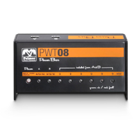 PWT 08 è un alimentatore di corrente per pedaliera universale con 2.000 mA di potenza totale e 8 uscite per spina cava con polo centrale negativo. Tra queste uscite, due sono commutabili su 9, 12 o 18 Volt e si possono combinare con il cavo a Y fornito, beneficiando di una tensione di uscita di 21, 25, 30 o max. 36 Volt. Queste uscite sono isolate tra loro e dalle restanti uscite. PWT 08 è regolato per un'alimentazione costante e protetto da cortocircuito e sovraccarico. L'apparecchio è dotato di un indicatore a LED di rete e di indicatori a LED di stato a due colori ed è fornito con un kit di cavi DC e adattatore di rete. PWT 08 è la scelta ideale se si utilizza solo uno o due consumatori di corrente elettrica o pedali da 9 Volt, che possono essere utilizzati anche con tensioni più elevate per maggiore dinamismo e resistenza alla saturazione.
