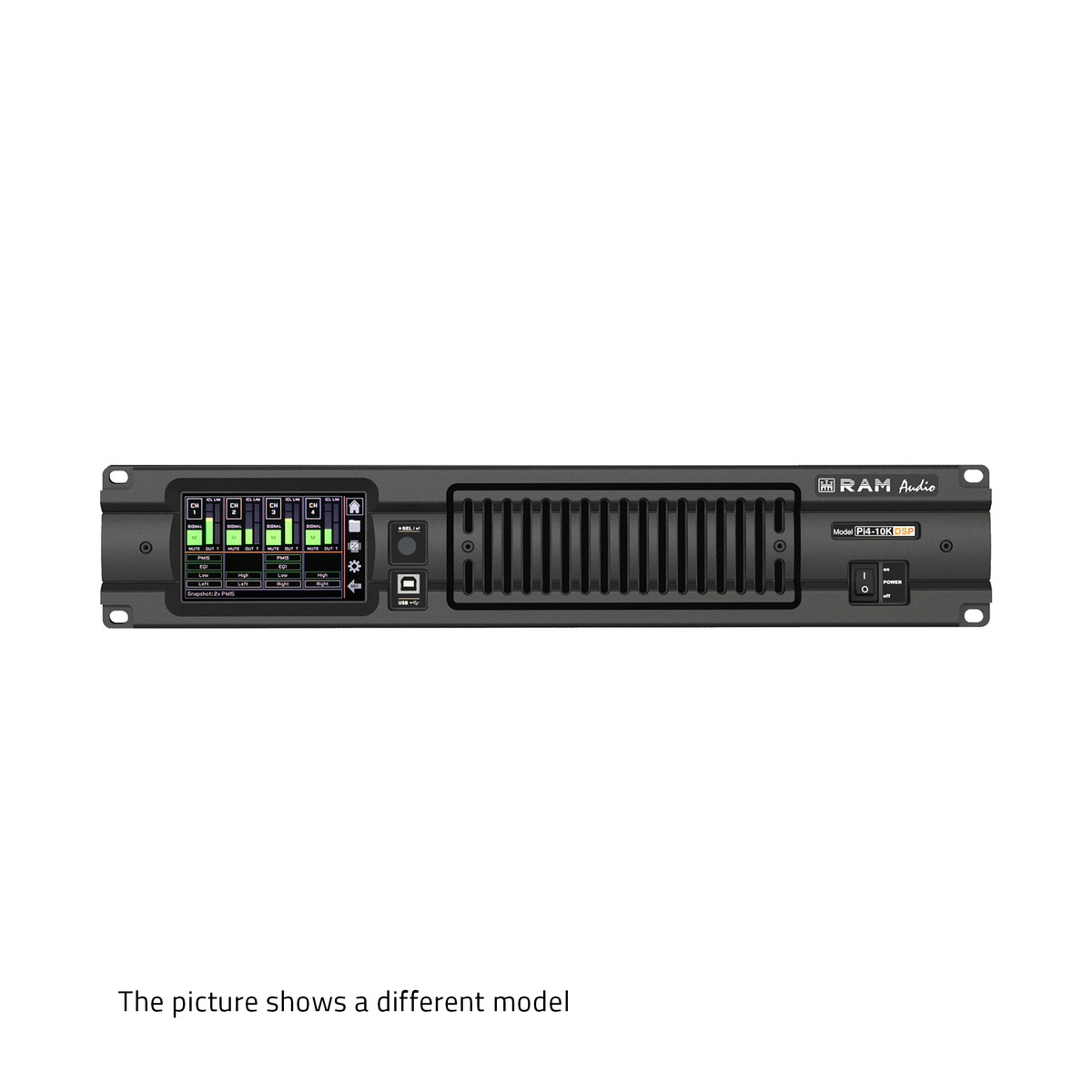 Standard Version:Standard Pi amp is equipped with DSP (4 Inputs/4 Outputs real time fully programmable through Ethernet, USB or directly from the large frontal touch panel) and industry standard Neutrik® XLR input.