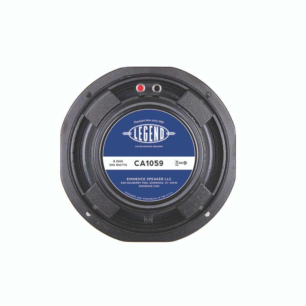 Dotato di una versione con magnete più grande rispetto a quello del popolare Legend CA10, Legend CA1059 è un altoparlante per chitarre basso pressofuso da 10" modellato secondo le specifiche originali OEM e caratterizzato dall'energia e dalla chiarezza che nel corso dei decenni hanno definito il suono di molte famose casse Eden. Come in CA10, lo chassis di CA1059 è tronco sui lati per un montaggio preciso in configurazioni 2x, 4x e 8x10. Oltre a una Xmax superiore, CA1059 presenta anche un magnete in ferrite più grande di 1,67 kg, che produce maggiore efficienza, ed è caratterizzato da un fattore di smorzamento Qts inferiore rispetto a quello della versione con magnete più piccolo.