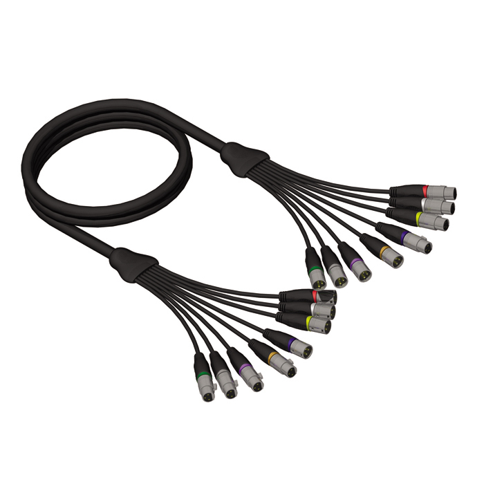Multicore Cable 8-channel 4 x XLR male and 4 x XLR female to 4 x XLR female and 4 x XLR male 5m