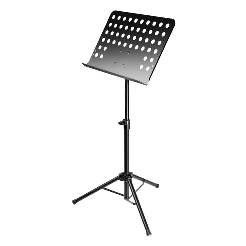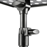 L’SMS 2 è un leggio per spartiti musicali con piano d’appoggio forato, provvisto di tre piedi ripiegabili, realizzato in acciaio e rivestito con una resistente verniciatura a polveri di colore nero. Regolabile in altezza e inclinazione, può essere utilizzato da seduti o in piedi. Grazie alla struttura snodabile e alla possibilità di staccare il piano d’appoggio, è facile da trasportare e una volta riposto occupa poco spazio.