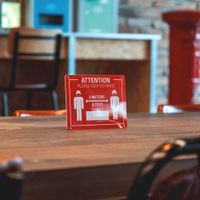 Nel campo bianco potete scrivere qualcosa voi stessi e quindi fornire ai vostri clienti ulteriori informazioni, come ad esempio il numero massimo di persone consentito, gli orari di apertura, ecc. Una pellicola trasparente e lavabile protegge il cartello e vi assicura la possibilità di riutilizzarlo.