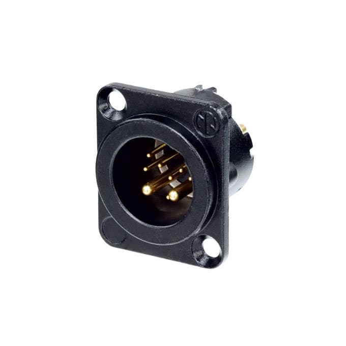 Connettore da pannello a 8 + 2 poli, alloggiamento a D standard cromato nero, contatto di massa tipo duplex