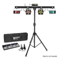 Zintegrowany uchwyt na statyw umożliwia szybki montaż i natychmiastowe użycie. Urządzenie Multi FX Bar oferuje wszechstronne możliwości sterowania dzięki wyświetlaczowi z 4 przyciskami, złączu DMX, bezprzewodowemu pedałowi nożnemu oraz pilotowi na po dczerwień, które wchodzą w skład zestawu. 46 spektakularnych programów w trybie automatycznym oraz sterowanie dźwiękiem umożliwia stworzenie fascynujących spektakli świetlnych przy użyciu wszystkich 5 efektów.