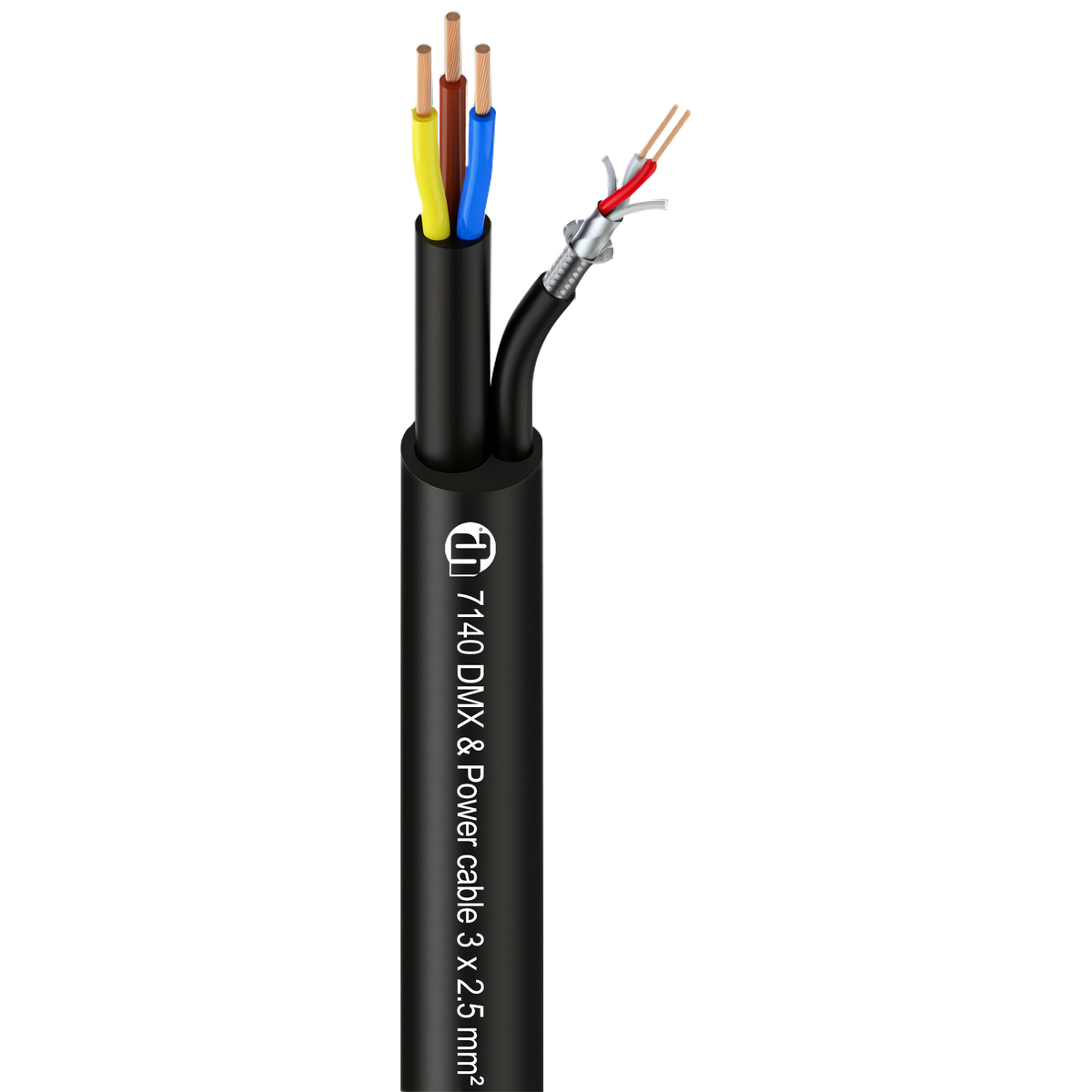 - DMX i kabel zasilający w indywidualnej powłoce