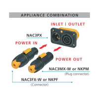 The powerCON TRUE1 is a locking waterproof 16 A true mains connector. It replaces appliance couplers wherever a very rugged solution in combination with a locking device is needed in order to guarantee a safe power connection.