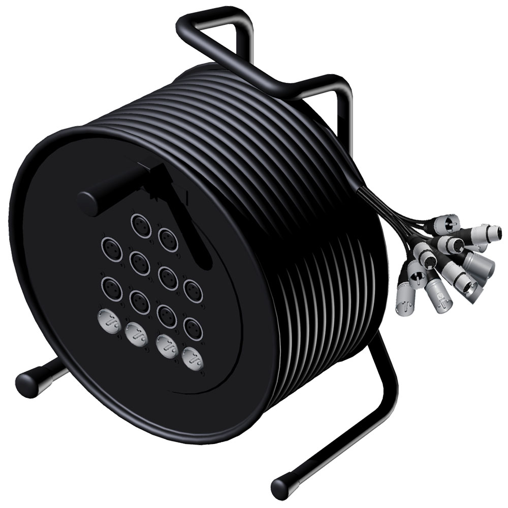 Kabel wieloparowy Multicore na bębnie z modułem scenicznym Stagebox 4 x XLR żeńskie i 10 x XLR męskie – 10 x XLR żeńskie i 4 x XLR męskie, 10 m