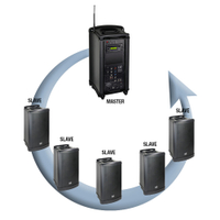 RoadMan 102 Follower Speaker Box służy do kierowania sygnału przez pętlę do 7 jednostek (w zestawie akumulatory 2 x 12 V DC i zasilacz)