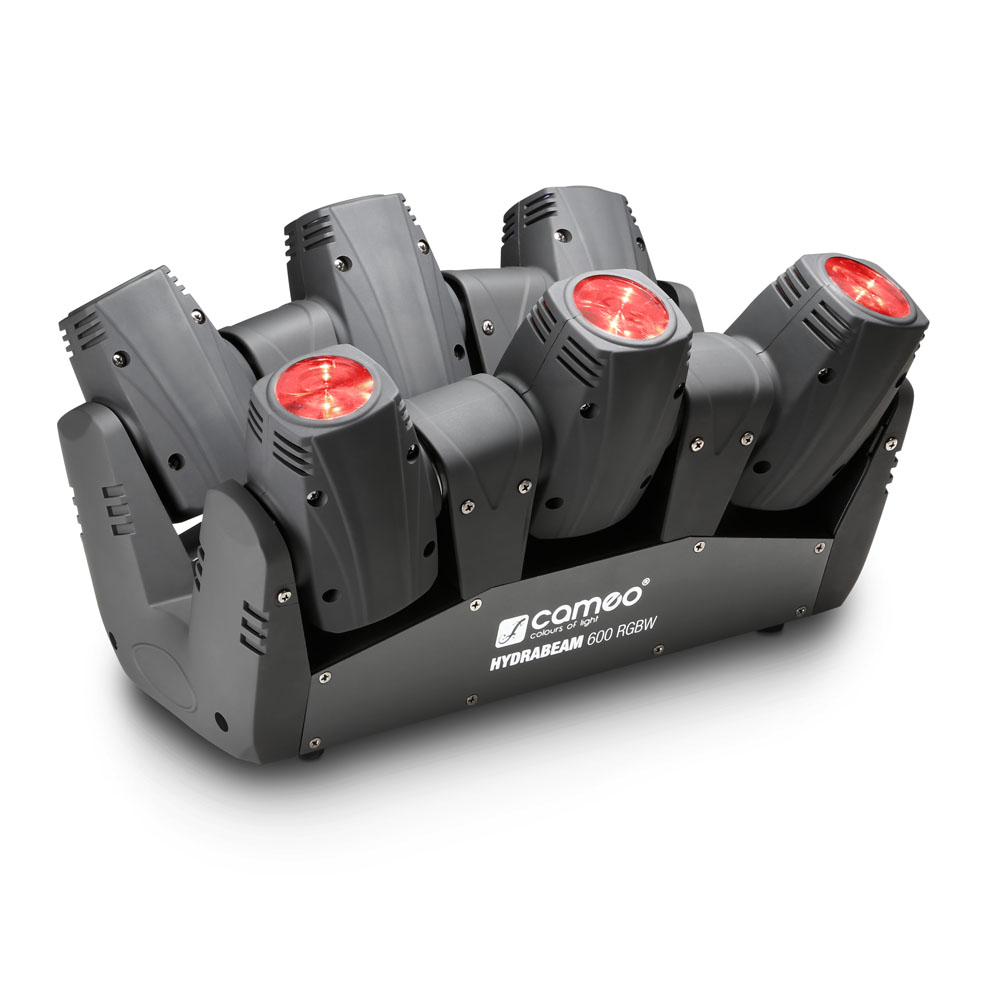 Urządzenie Cameo HydraBeam 600 RGBW łączy w sobie 6 ultraszybkich, ruchomych głowic w bardzo kompaktowym systemie. Głowice tworzą bardzo ostre wiązki światła o ogniskowaniu wynoszącym 4,5° i są wyposażone w wydajne diody Quad-LED 10 W marki Cree. Gło wicami Moving Lights można sterować z osobna i zupełnie niezależnie w zakresie 270°.
