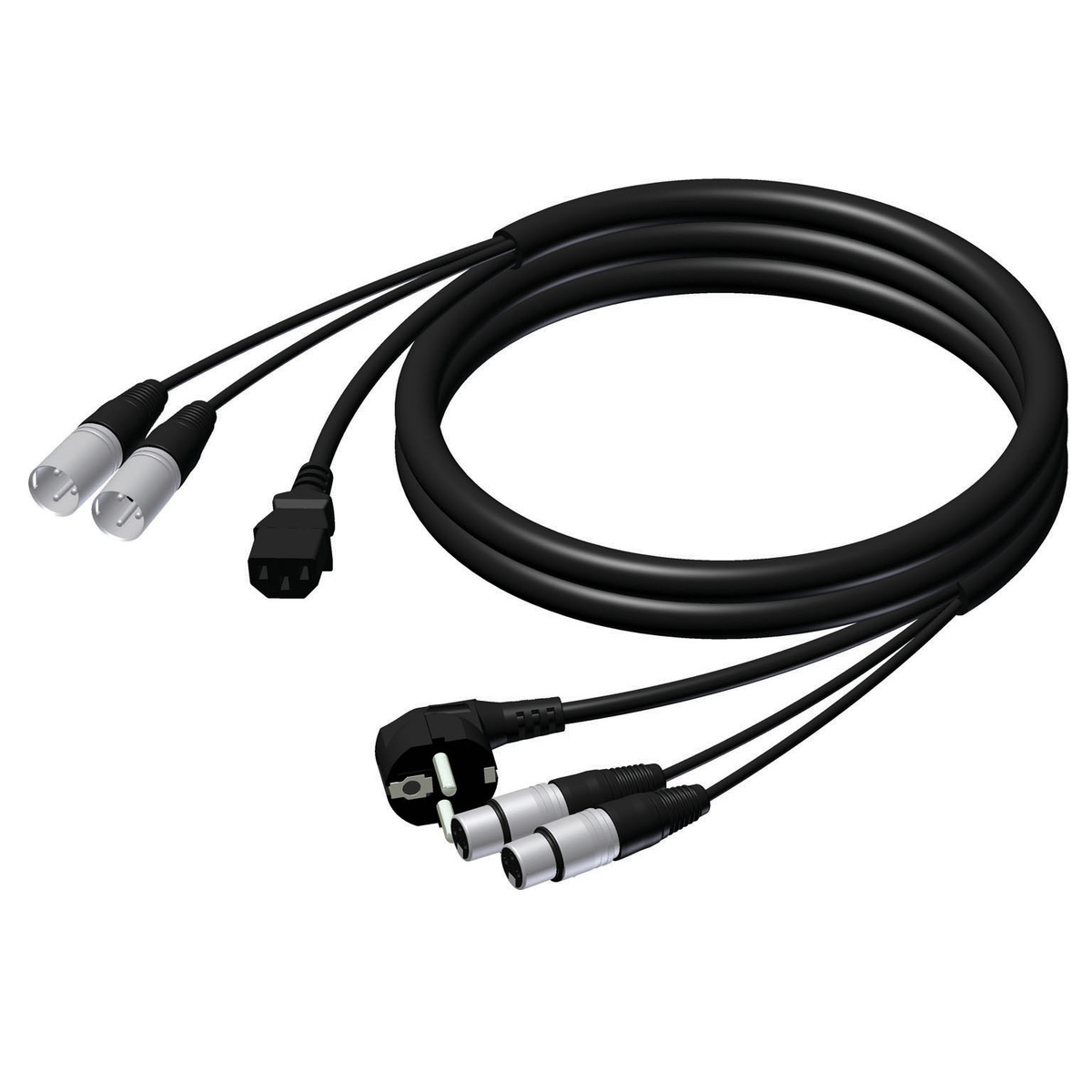 Kabel zasilający i mikrofonowy z zestykiem ochronnym Schuko i XLR żeńskim – wtyczka europejska i XLR męskie, 5 m