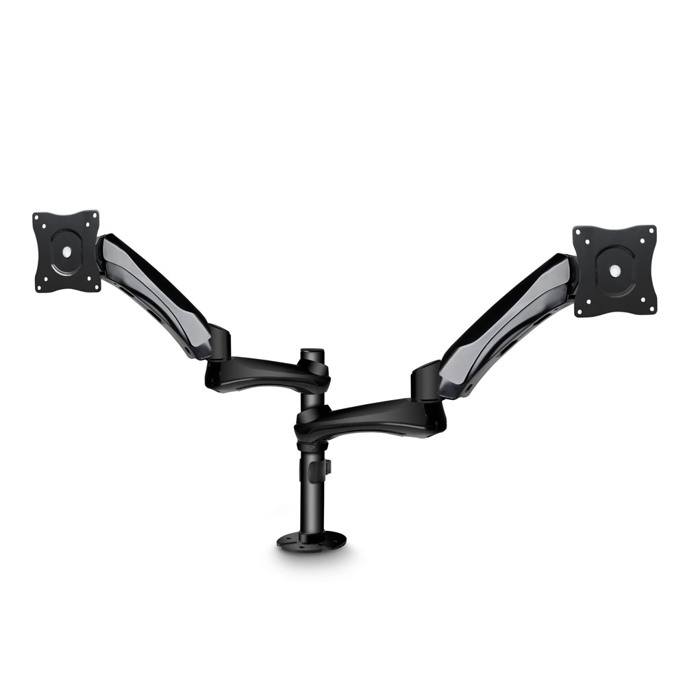 SA 6132 B to eleganckie ramię obrotowe do 2 monitorów. Wykonane zostało ze stali i aluminiowego odlewu ciśnieniowego i wyposażone w tunel kablowy zapewniający schludny montaż. Ramię można dowolnie pozycjonować. Inteligentnie zaprojektowany rozkład ci ężaru pozwala na łatwą i wygodną regulacją wysokości. W zestawie znajduje się uchwyt do stołu i opaska ochronna zapewniająca bezpieczny montaż.