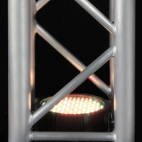 - Jasna, płaska lampa PAR wyposażona w siedem 4-watowych diod LED Quad Colour