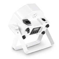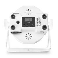 Lampa PAR CLPFLAT1UVIRWH może pracować w trzech trybach DMX – Master, Slave i Standalone. Urządzenie posiada jasny wyświetlacz z 4 przyciskami służącymi do konfiguracji. Użyteczny pilot na podczerwień jest dostępny jako akcesorium.
