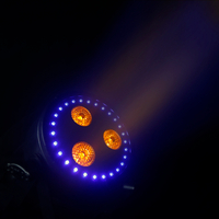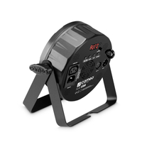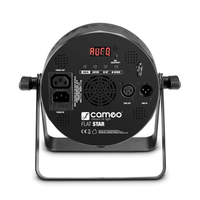 The Cameo Flat Star is a compact fixture with shallow depth featuring three 12 watt RGBWA+UV LEDs surrounded by a ring of 27 SMD LEDs. It is suitable for PAR light applications with intense colour mixing or blacklight while the RGB ring features built-in chase patterns adding spectacular high-speed strobe or smooth halo effects.