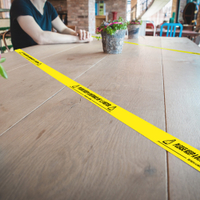 Taśma ostrzegawcza z dystansu społecznego Adam Hall jest taśmą samoprzylepną z PCV, która idealnie nadaje się do tymczasowego znakowania, jak również do stosowania w poczekalniach, aby zapewnić klientom lub goście zachowują zalecany dystans społeczny 1,5 m w celu zmniejszenia ryzyka zakażenia wirusem.