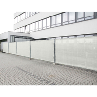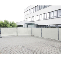 Osłony ogrodzeniowe Adam Hall z polietylenu o wysokiej gęstości zapewniają idealną ochronę przed osobami postronnymi i pyłem podczas imprez plenerowych i na placach budowy. Osłony o wymiarach 1,76 x 3,41 m są wzmocnione na obrzeżach PVC, mają oczka w odstępach co 50 cm i są odpowiednie do wszystkich standardowych ogrodzeń mobilnych. Mająca wąskie oczka, ważąca 200 g tkanina siatkowa o dużej nieprzezroczystości przepuszcza wiatr w zakresie 20%, jest hydrofobowa, odporna na czynniki atmosferyczne i trudnopalna według DIN 4102 B1. Osłony ogrodzeniowe ADAM HALL są dostępne w 9 kolorach (czarny RAL9005, szary RAL7040-7045, biały RAL9003, zielony RAL6028, granatowy RAL5003, jasnoniebieski RAL5017, czerwony RAL3020, pomarańczowy RAL2009 i żółty RA L1016-1018).