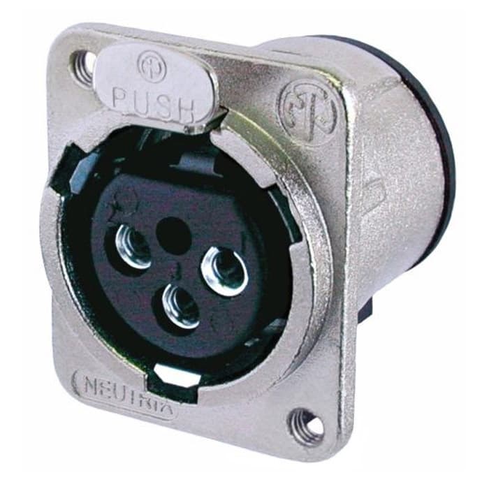 Gniazdo XLR chassis w jednolitej obudowie metalowej typu D, do montażu na płytce drukowanej. W celu ułatwienia montażu można wyjąć wkładkę z obudowy. UL recognized component.